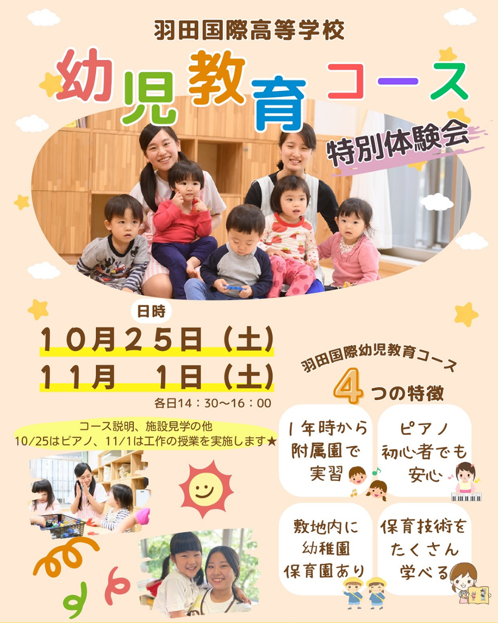 内 容:「秋の学校説明会」に参加し、羽田国際をもっと知りたい方へ、体験会をご用意