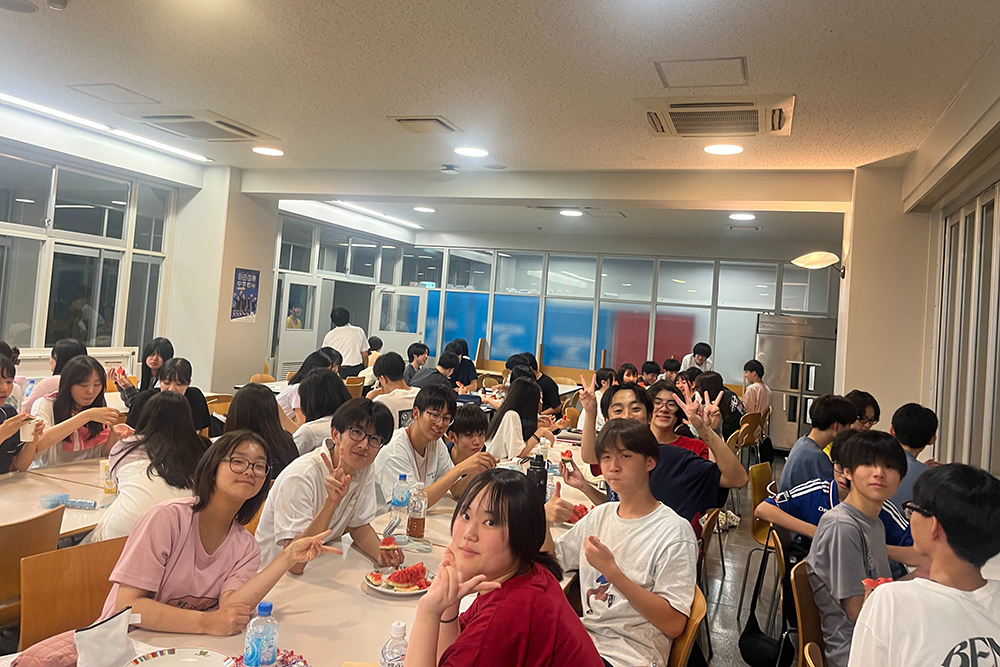 この合宿の面白いところは、授業は学年ごとですが、チームは学年の枠を超えて組まれているところです。後輩たちは先輩たちの勉強法やその姿を見て、また先輩たちも後輩たちの姿を見て切磋琢磨していきます。学年を超えたチームで争う英単語テストでは、日に日に平均点がアップしており、我々教員も嬉しく感じました。