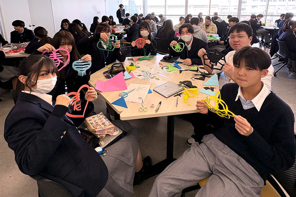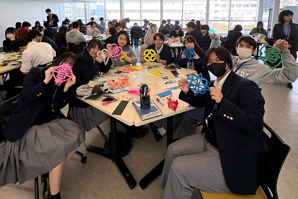 留学生の皆さんからは、中国の伝統的な切り絵「窓花(チュアンフア)」の意味や作り方を教えていただきました。