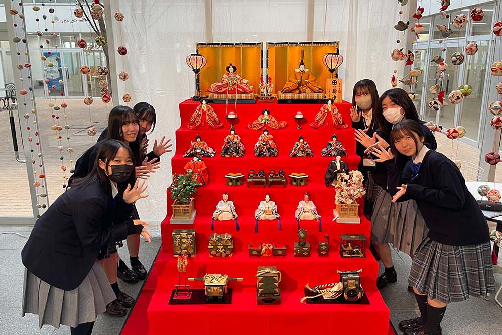 今年は高等学校2年幼児教育コースの皆さんが、ひな人形を飾り付けてくれました。 飾り方を見ながら、傷をつけないように、七段にも渡る豪華なひな人形を慎重に設置している姿が印象的でした。 羽田国際の…