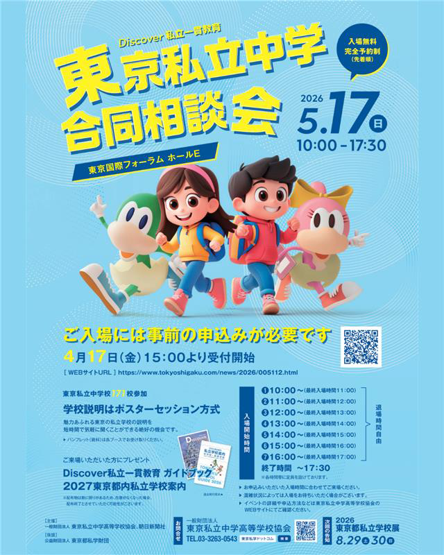 東京国際フォーラムで開催される『Discover私立一貫教育2026東京私立中学合同相談会』に本校も参加します!