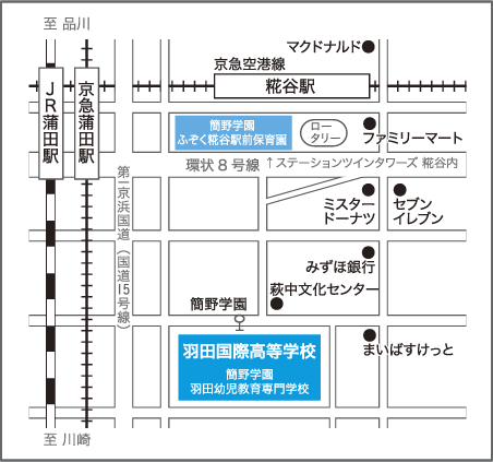 JR蒲田駅東口よりバス3番乗車(12分)→簡野学園前下車