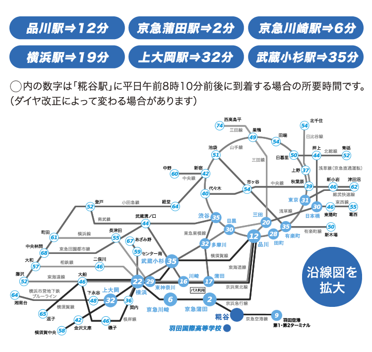 京急蒲田駅乗換→京急空港線(2分)→糀谷駅下車徒歩(7分)