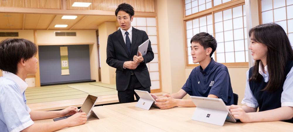 タブレット端末を一人一台導入し、インターネット学習システム「スタディサプリ」で、基礎の定着から応用力の養成まで、高校の学習の土台となる総合的な力をつけていきます。