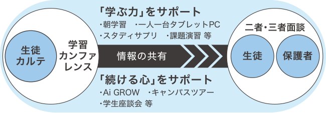 - 生徒一人ひとりの特徴や個性、得意、苦手分野などの情報を教員全員が共有できる本校独自のシステムです。