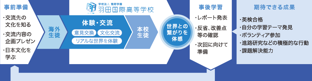 「HANEDA留学」は、日本と世界の入口である羽田空港隣接のメリットを活かし、本校にいながら「世界との繋がり」を体感できる独自のプログラムとして、学校全体で年10回以上の国際交流を行う予定です。