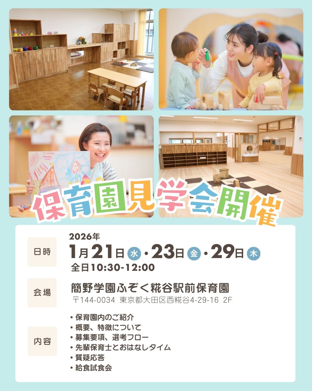 簡野学園ふぞく糀谷駅前保育園にて見学会を開催します!